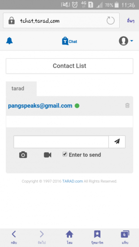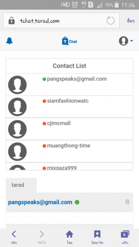 - กรณีเข้าผ่าน เว็บไซต์ m.TARAD.com ให้สังเกตมุมบนของหน้าจอ จะเห็นสัญญลักษณ์ T-Chat คลิก เพื่อเข้าสู่ระบบได้ทันที หรือคลิกเข้าจาก Link ในอีเมล์แจ้งเตือนได้เช่นกัน