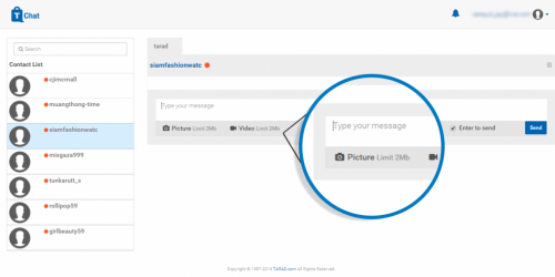 โดยร้านค้าสามารถตอบคำถามได้ทั้ง การพิมพ์แชท, ส่งรูปภาพ และ วีดีโอ กับลูกค้าได้ทันทีและเมื่อมีการตอบกลับจากลูกค้า จะมี Notification แสดงในระบบ