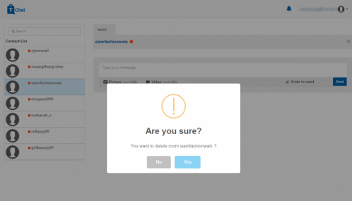 Notice: ร้านค้าสามารถลบห้องแชทของลูกค้าได้ กรุณาตรวจสอบให้แน่ใจว่าท่านต้องการลบประวัติการแชทหรือไม่ หากลบแล้วจะไม่สามารถนำประวัตินั้นกลับมาได้อีก > โดยกด รูปถังขยะ มุมบนขวาของหน้าสนทนา เพื่อทำการลบห้องแชทกับลูกค้าท่านนั้นๆ