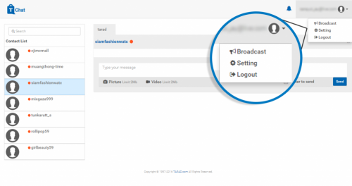 6. New! Broadcast ส่งข้อความถึงลูกค้าหลายคนได้ในครั้งเดียว – ระบบที่จะทำให้การขายสินค้าของท่าน ง่ายยิ่งขึ้น โดยท่านสามารถทำการส่งข้อความ โปรโมชั่น กลับไปยังลูกค้าที่เคยสอบถามสินค้าของท่านเองได้ ด้วยเมนู Broadcast (ข้อความ, รูปภาพ)