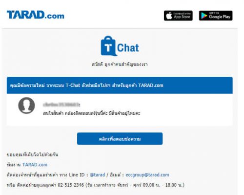 อย่าลืม! เช็คอีเมล์ หรือเข้าระบบ T-Chat เพื่อตอบคำถามเป็นประจำ เพราะลูกค้ากำลังสนใจสินค้าของร้านค้าท่านอยู่ ลูกค้ารอนานอาจเปลี่ยนใจ… ทำให้โอกาสการปิดการขายสินค้าของคุณลดลงได้นะครับ – ทีมงาน TARAD.com