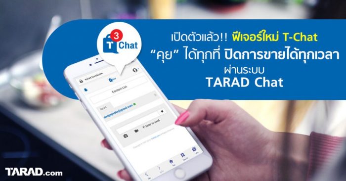 T-Chat หรือ TARAD Chat ฟีเจอร์ใหม่จาก TARAD.com ที่เปิดให้แฟนๆ นักช้อป ชาวตลาด ดอท คอม คุยกับร้านค้าทุกร้านค้าได้สะดวกยิ่งขึ้น เริ่มใช้งานแล้ววันนี้ (พร้อมให้บริการเต็มรูปแบบ เดือน ก.พ. 2560 เป็นต้นไป) ซึ่งมาพร้อมกับฟีเจอร์หลักๆ ที่จะรองรับทุกไลฟ์ไตล์ ทั้งผู้ซื้อ และผู้ขาย โดยร้านค้า สามารถตอบคำถามต่างๆ เช่น รายละเอียดสินค้า, Stock สินค้า, ข้อมูลการจัดส่ง, ราคา และข้อมูลอื่นๆ ของสินค้า กับลูกค้าที่แชทเข้ามาสอบถามได้ทันที…..